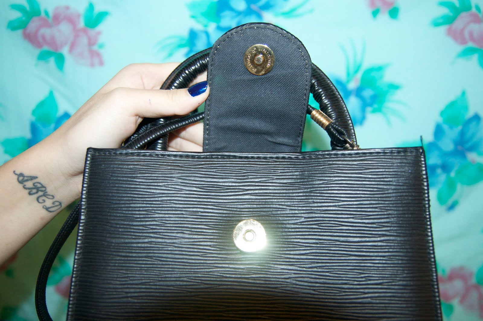 - Description: These textured black bags with gold hardware belonged to a female alchemist. She would bring these bags to the apocathary and buy ingredients such as dragonfly eyes, butterfly wings, and puppy snort. The mock-croc one was her favourite, but the smaller one was lighter, and perfect for throwing around. She is currently on a quest to create the philosopher's stone to prove that science is not science after all...